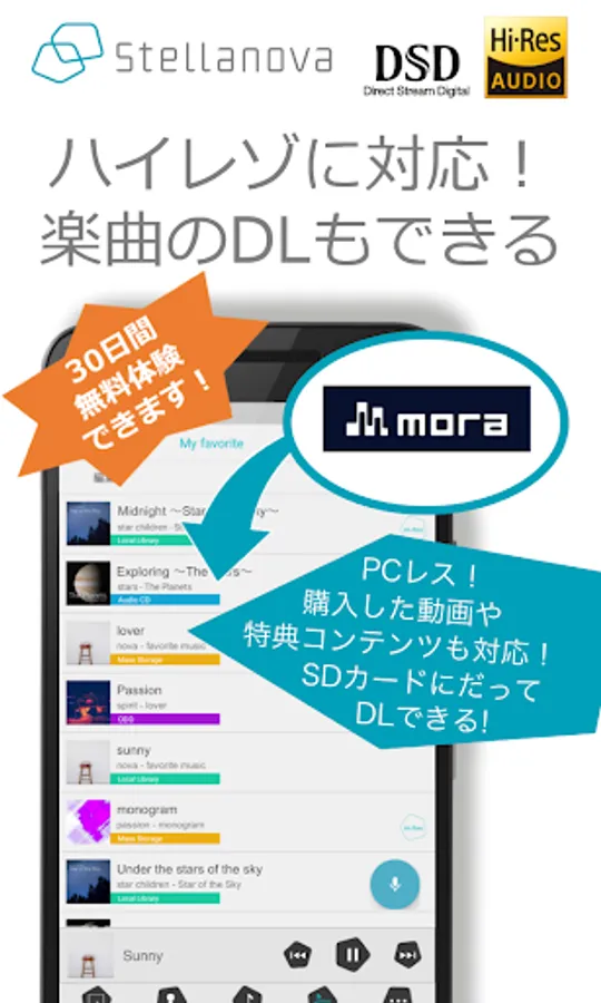 "Wireless Hi-Res Player ~ Stellanova ~" is a music player application supported various music such as Hi-Res, Audio CD, AAC, MP3 etc.