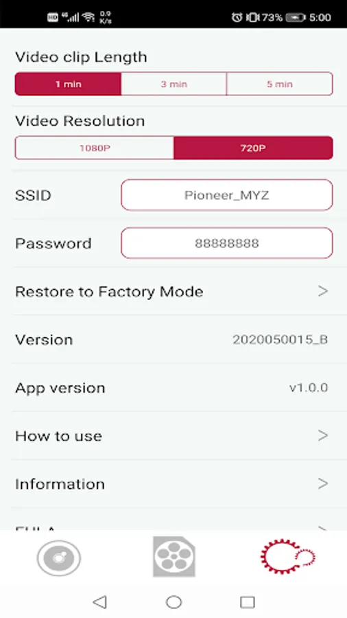 "Dash Camera Interface" is an application for connecting to the target Pioneer dash camera.