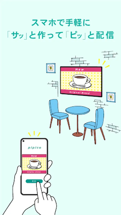 If you have a smartphone and a device compatible with Pixela, you can start signage right away.