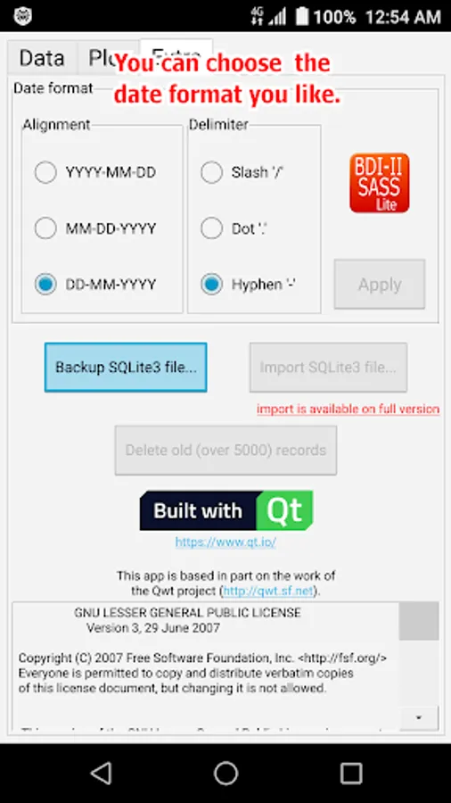 The operations are simple. It can export the data to CSV file and SQLite3 file (saves into SD card). To protect privacy, this app will not connect to the network.