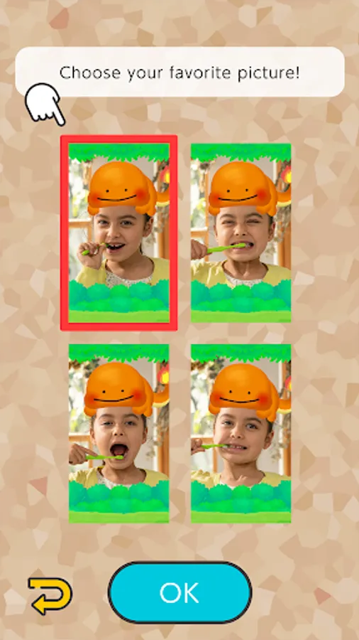 While you brush, you can let the game snap a few photos of your great brushing in action. Choose your favorite shot, and then have some fun decorating it with a variety of stickers! Keep brushing your teeth daily, and you’ll continue to collect more stickers you can use to decorate your photos.