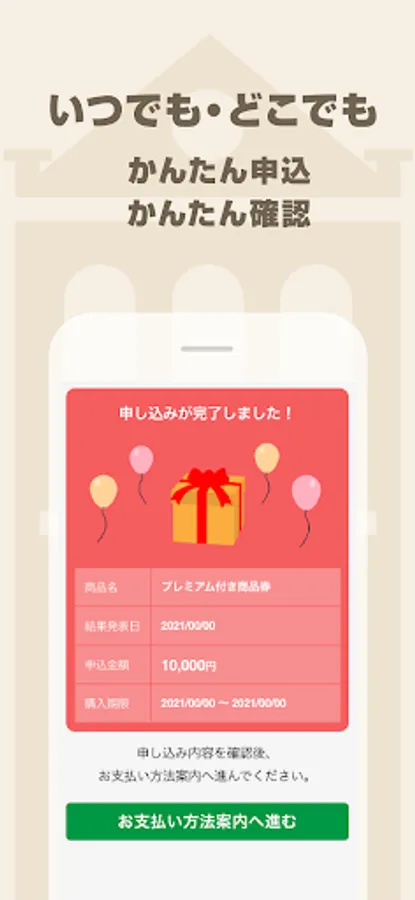 All you have to do is select the gift certificate in the app, select the desired purchase amount and apply. You can also check the lottery results within the app.