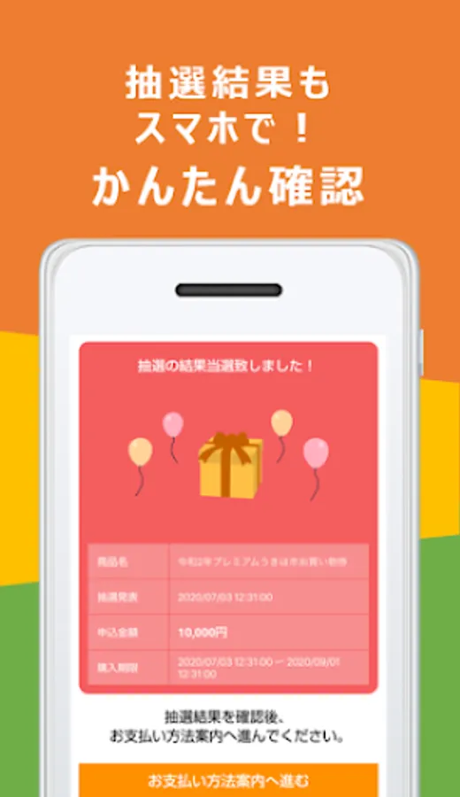 On the day of the lottery, you will be notified of the winning results by e-mail, and you will be able to operate the gift certificate within the app.