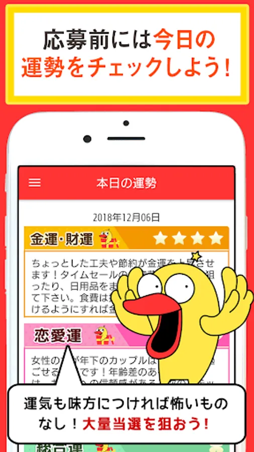 I understand your fortune. Since luck is also necessary for the drawing, if you check your daily fortunes carefully and apply at the same time as your luck, you should be more than just applying and the results will be significantly different!