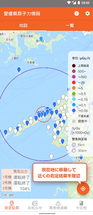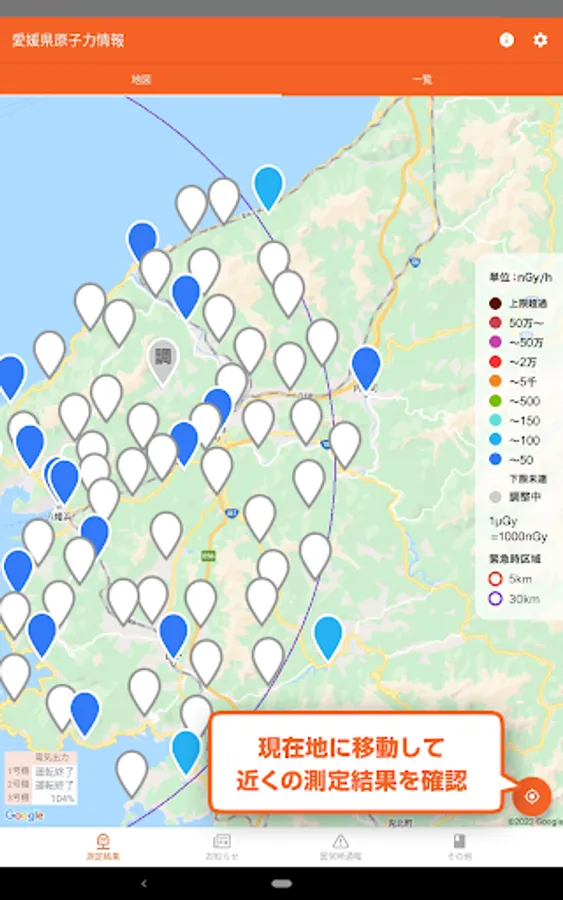 It is an application installed in Ehime prefecture to check the value and location of radiation measuring equipment.