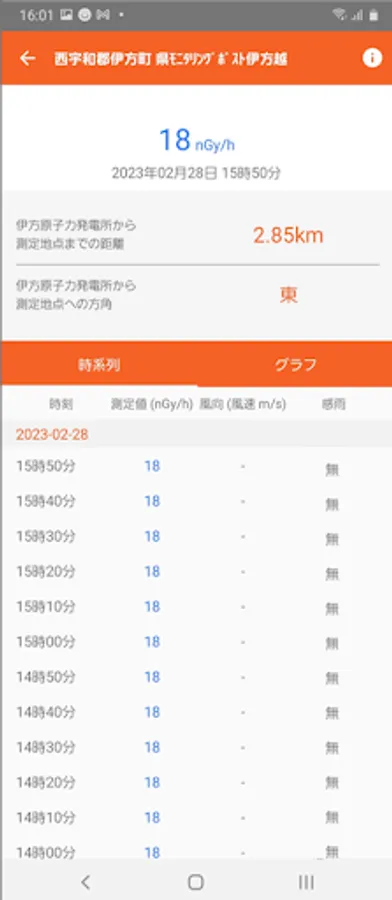 We can also know the current radiation dose, weather, wind speed, wind direction of measurement equipment installation point, including distance from Ikata power station in Ikata-cho Nishiwa-gun, Ehime prefecture.