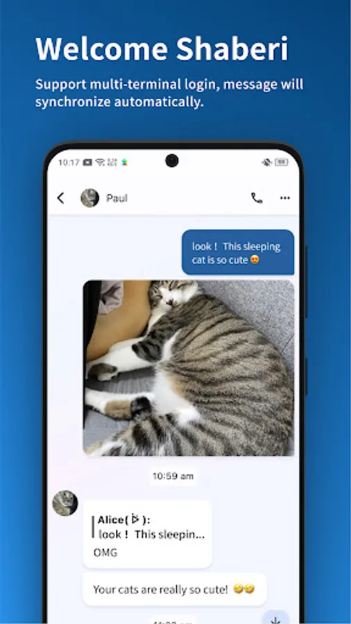 Shaberi is super fast, easy, secure and free. You can send unlimited messages, photos, videos and any kind of files (.doc, .zip, .pdf, etc.) Shaberi groups can add up to 10,000 members depending on the needs, its group creation method is divided into private and public, i.e. invite-only not searchable and searchable by any user, its group message transmission method is divided into encrypted and non-encrypted, and it is suitable for different user groups. Suitable for different user groups and uses.