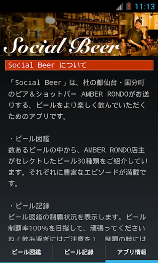 "Social Beer" is, vias and shot bar AMBER RONDO of the City of Trees, Sendai Kokubuncho to send, is the app for you drink more enjoyable beer.