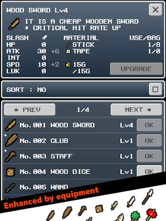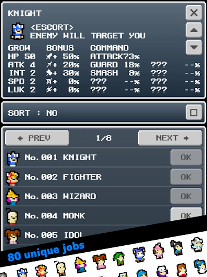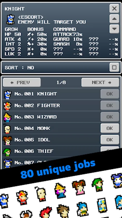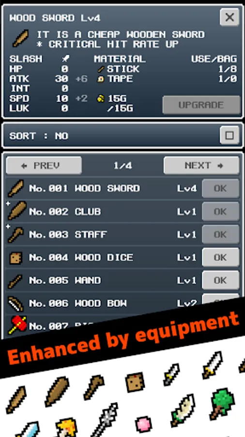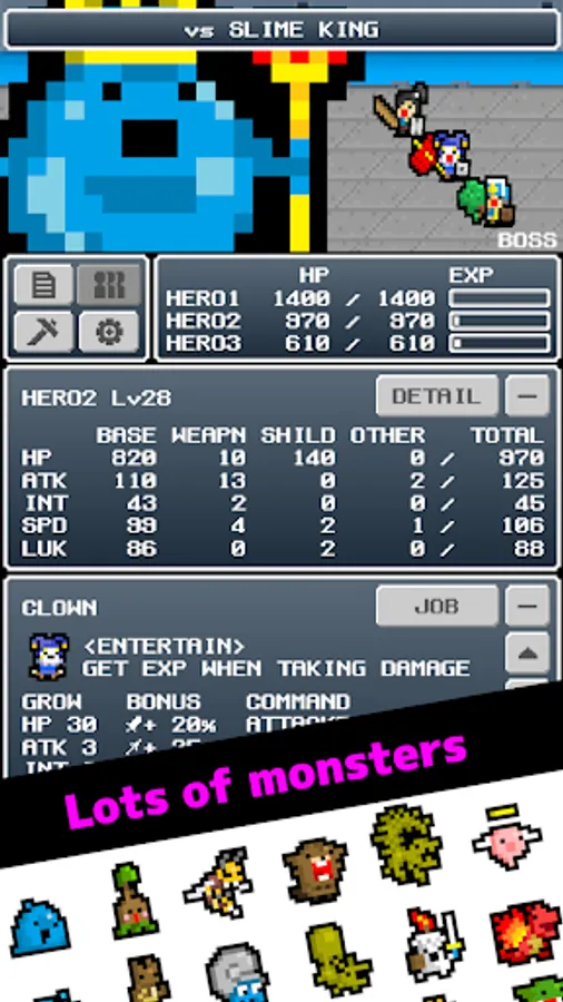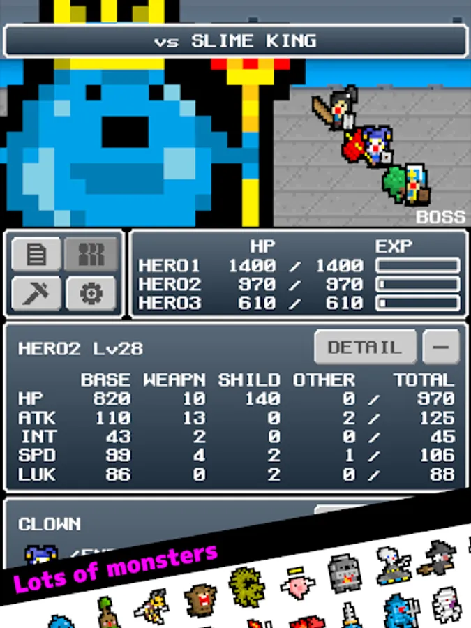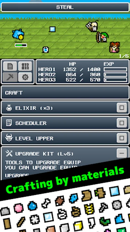 Players can change the jobs and equipment of their heroes and craft new item with collected materials to improve battle efficiency.