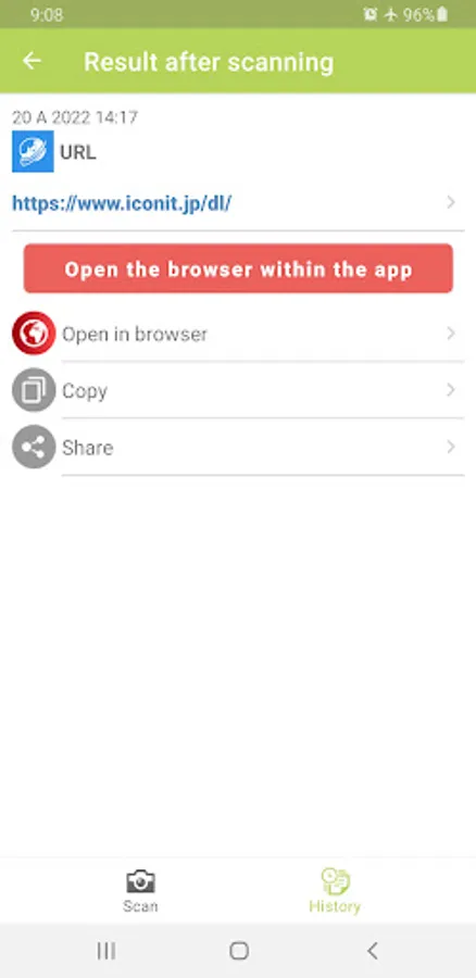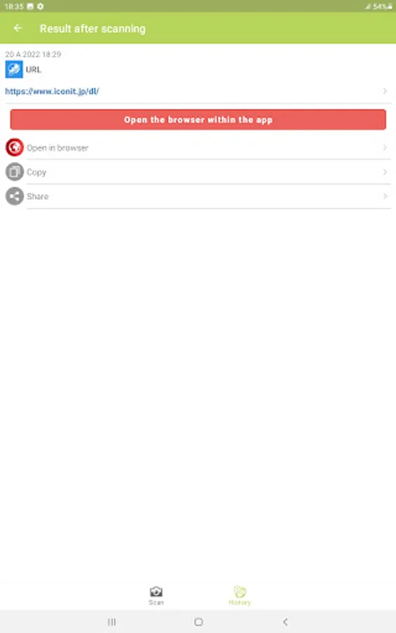 The information scanned by QR/barcode scanner ICONIT Lite is saved in the history of the application.From the history, you can check scanned QR code/barcode information at any time.You can also share your favorite QR code/barcode information with others.