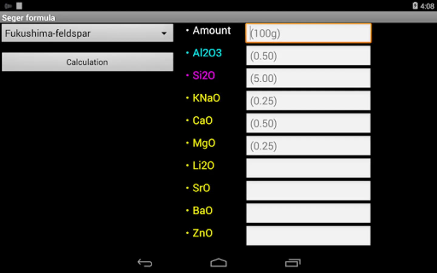 During the preparation of glaze pottery, I will ask the compounding ratio of glaze material from Seger formula.
