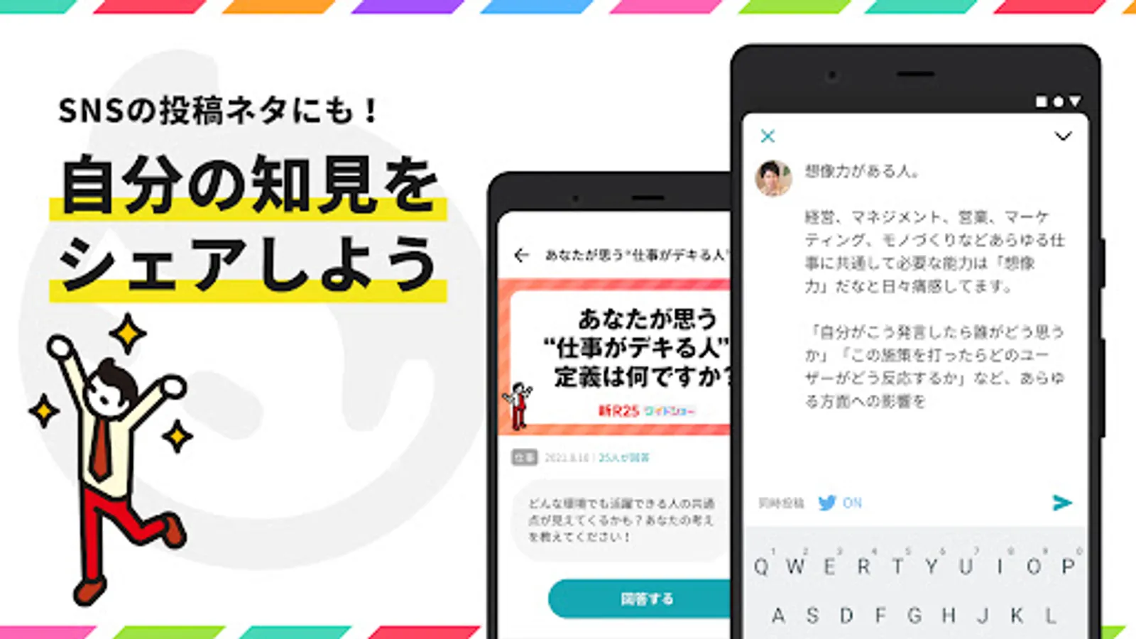 "The new R25 delivers information to young business people's worries without looking from the top. I think that conversation-style articles that readers can easily sympathize with are inventions." (Shintaro Tabata)