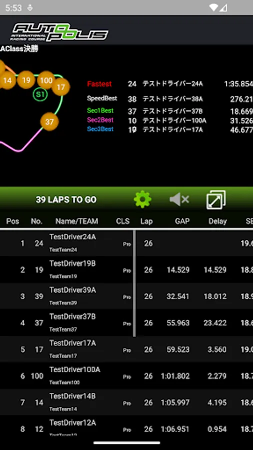 It is a live timing app that can be used at the Autopolis International Racing Course.