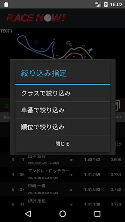 Timing monitor function, track position, also equipped with features that narrow down the driver (racer) you want to see in addition to the individual wrap function.