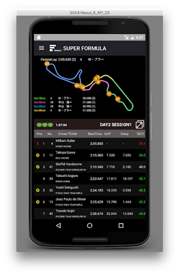 Live timing is a matter of course, also displayed, and also delivers all the lap information of all vehicles SUPER FORMULA of the official appposition information of the car.