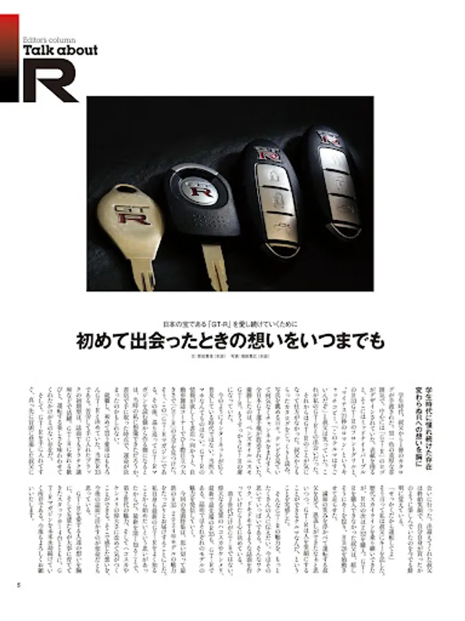 Since its inception in November 1994, GT-R Magazine has consistently delivered a magazine structure specializing in Nissan's GT-R as a specialized magazine dealing with single-grade models. .. All successive models are regarded as "GT-R", 1st generation (Hakosuka / Kenmeri), 2nd generation (R32 / R33 / R34), 3rd generation (R35), all GT-R owners and GT-R We will send hot information to our fans.