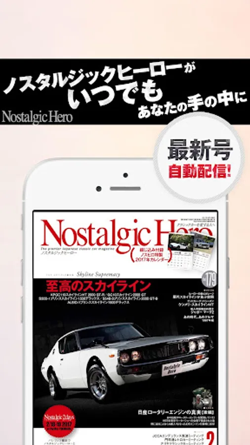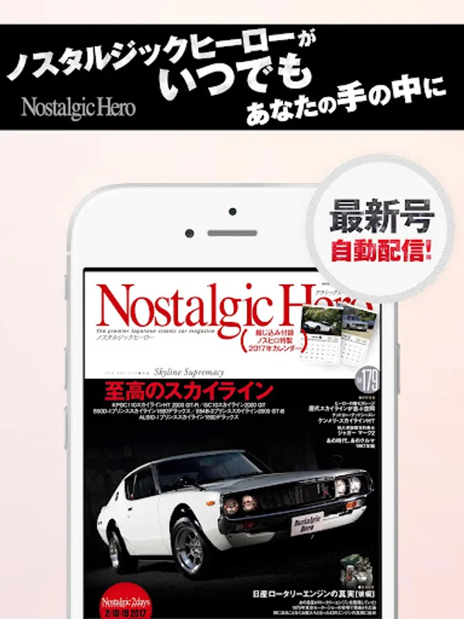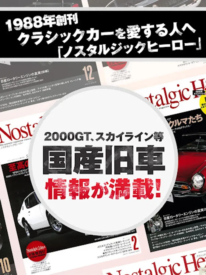 Nostalgic Hero (nostalgic hero), the car magazine for people who love the classic car. Even now as a great car magazine that spotlights the old car, nostalgic car that does not lose its shine, was first published in 1988 (1988). Since then, it has been loved by many of the classic car fan as commonly known Nosuhiro.