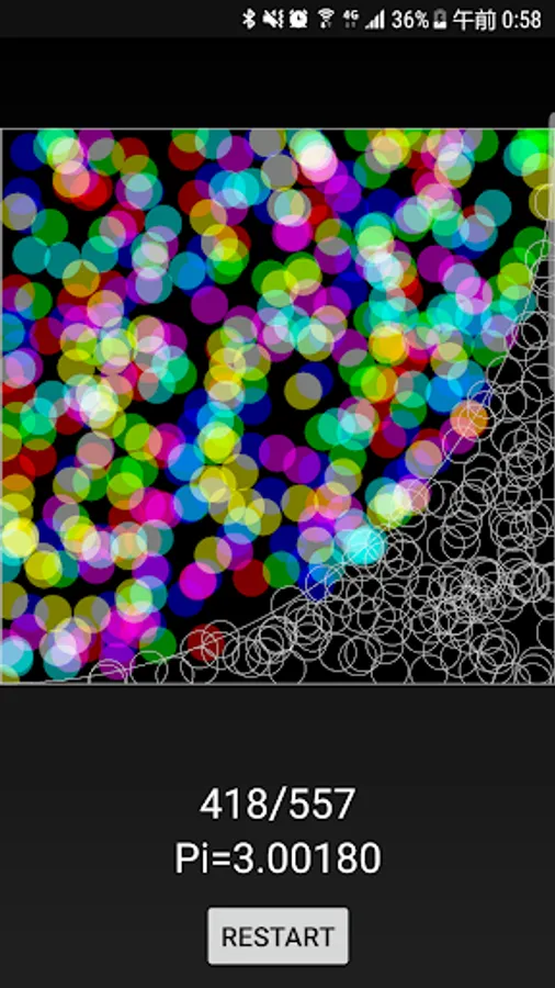 Pi constant that is calculated in this App is not very accurate because of the bias of random number in Computer.
