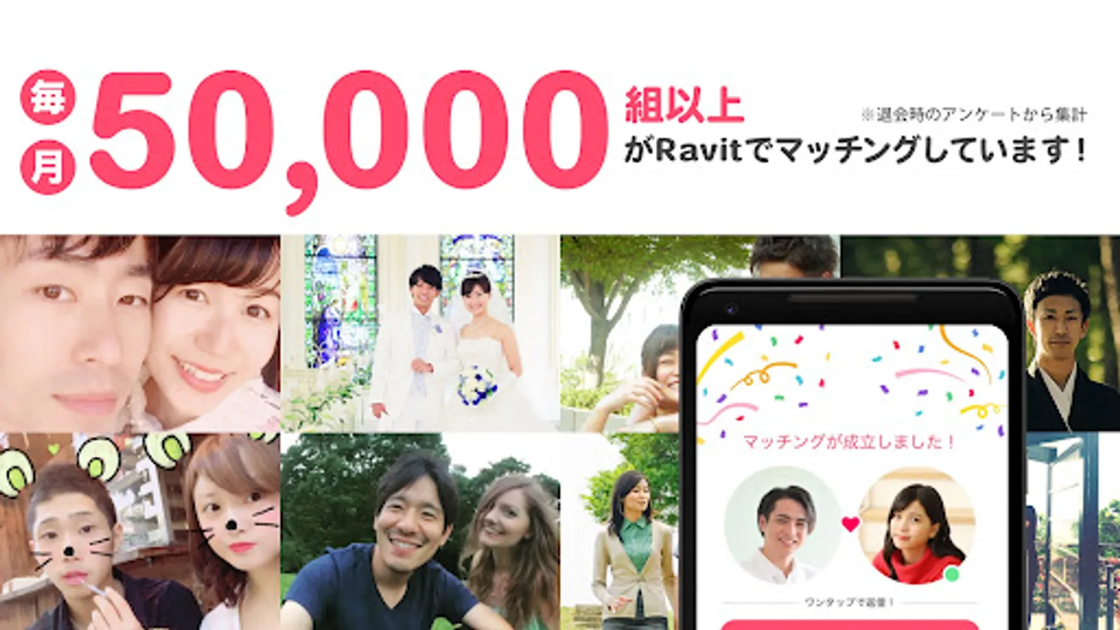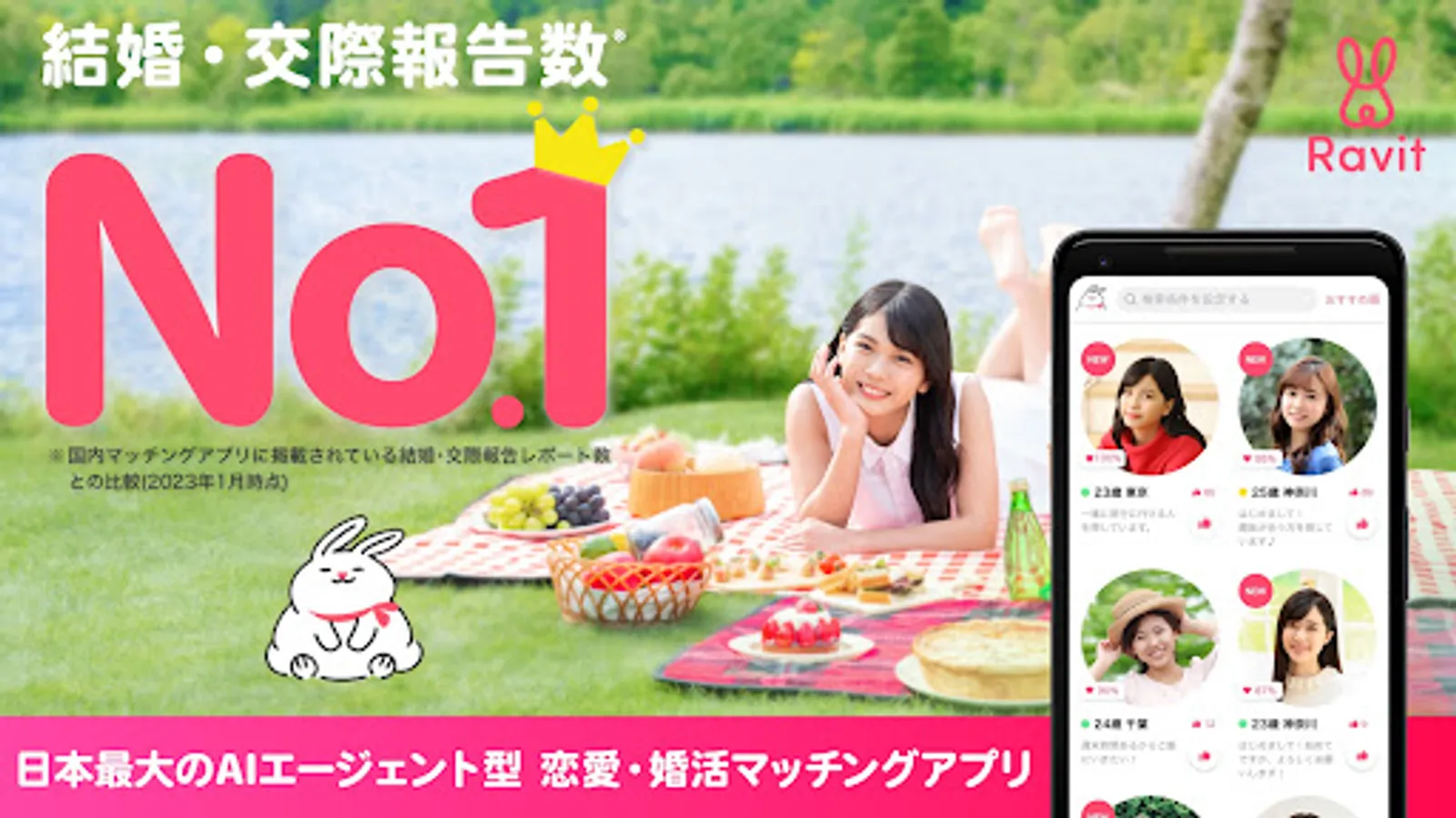 Ravit is an AI agent-type matching app with the No. 1 number of reported marriages and relationships! (*1)