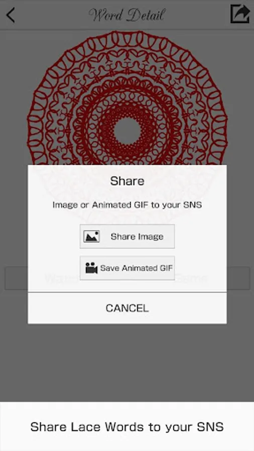 It's also possible to share favorite Lace Words with SNS !
