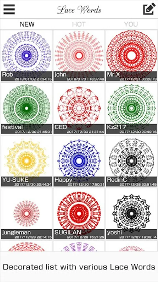 Of course, you can also watch the Lace Words created by other users.