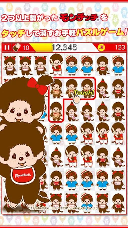 - To touch the number is eliminated, let's touch the Monchhichi that led two or more up, down, left and right!