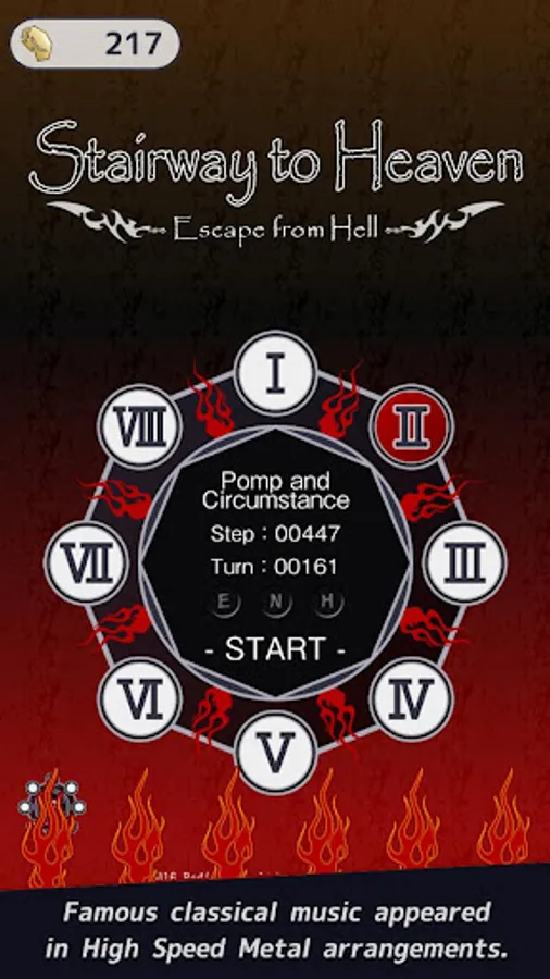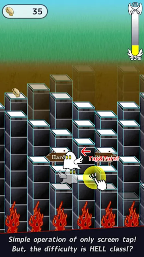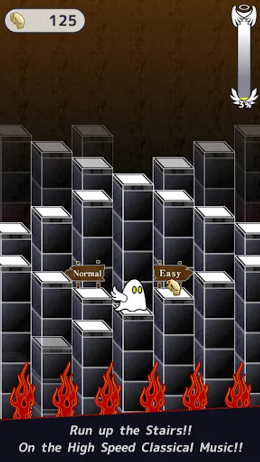 The character to go up the stairs from HELL, you lead it to HEAVEN by tapping the screen on the beat!