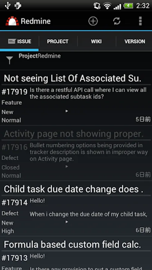 OpenRedmine is an android Redmine client.