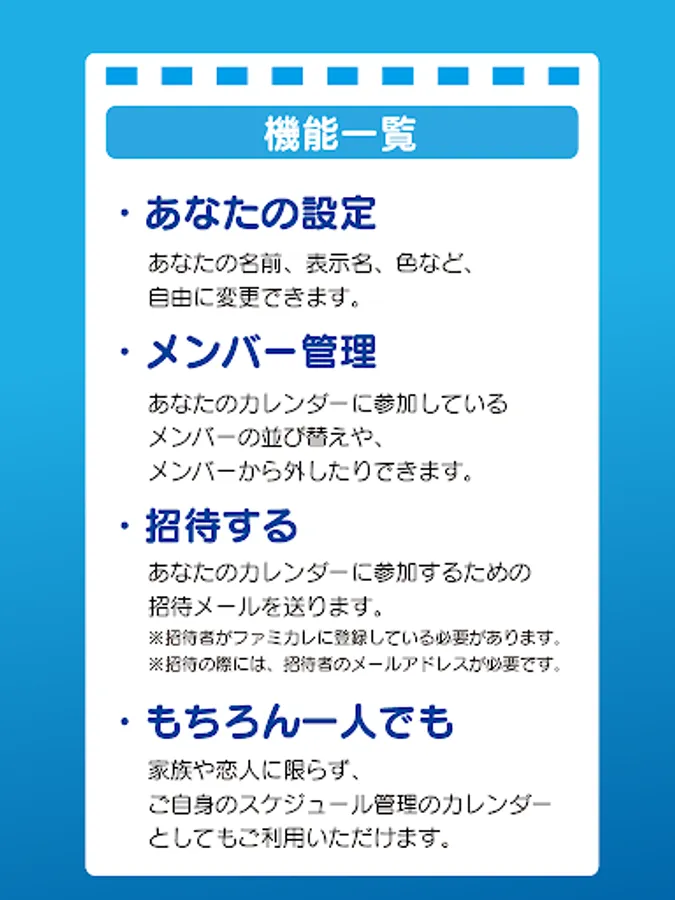 can be shared together and schedule important people such as family and lover, famica (Famika) is a calendar share services.