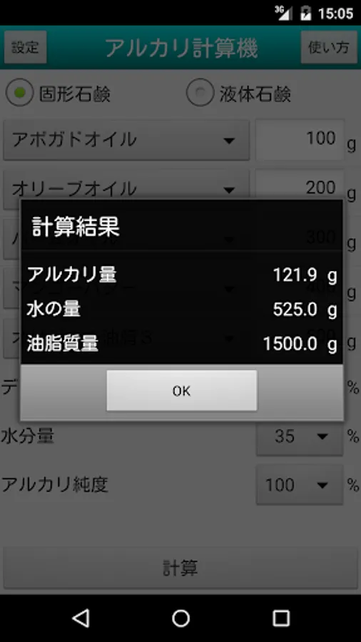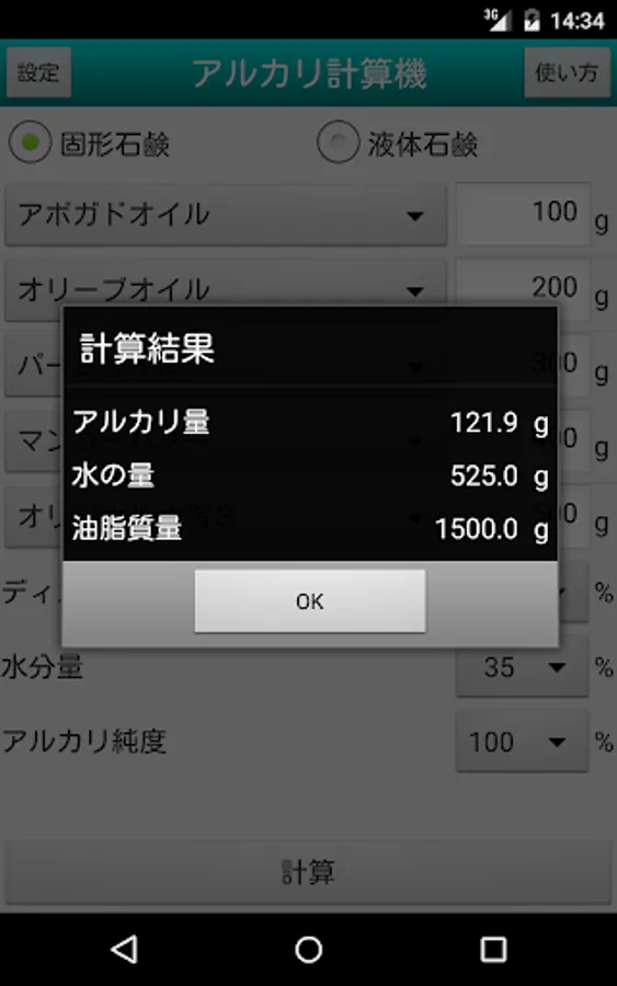 5. Calculation result is displayed in a dialog.