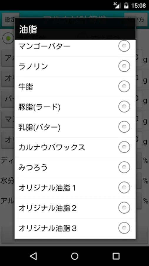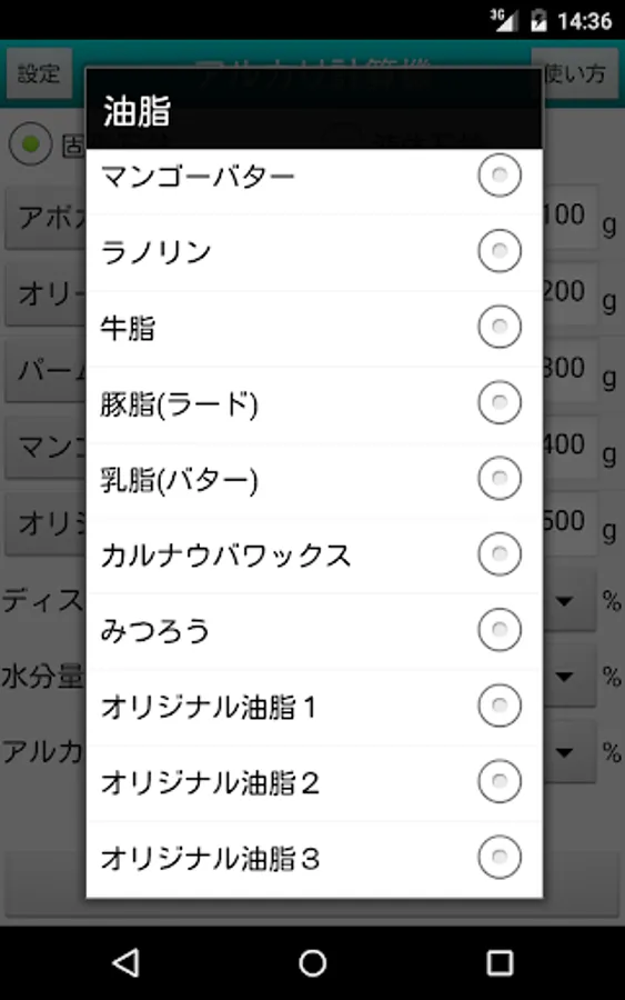 2. Choose oil from a list. And amount used is inputted.