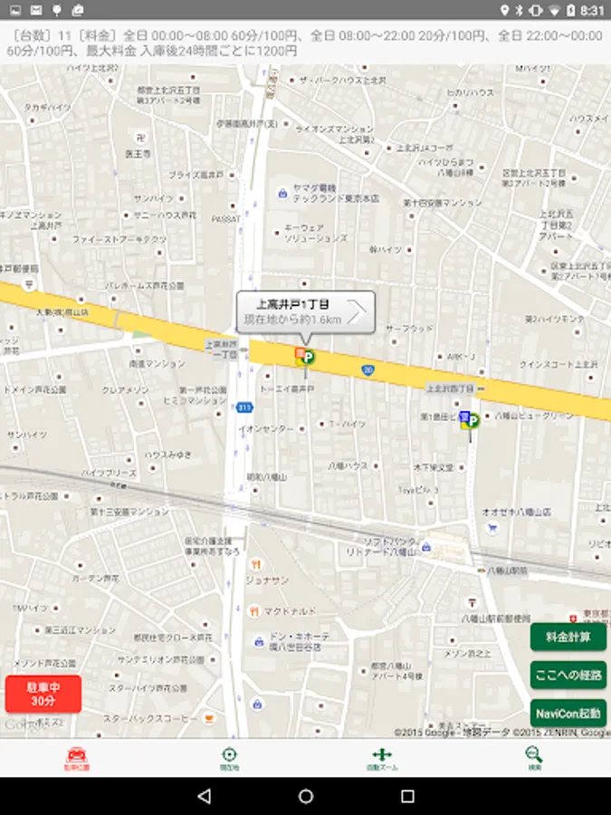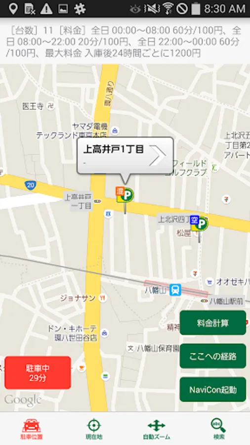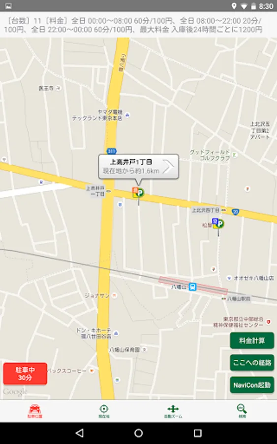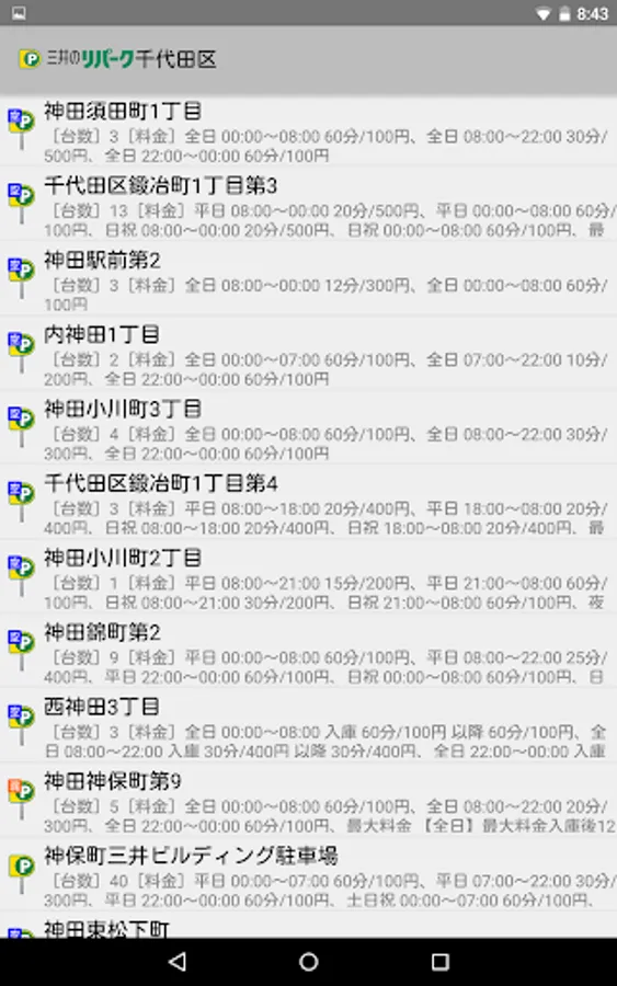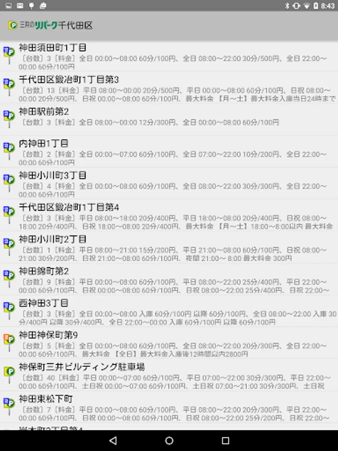 When choosing a parking lot, information such as hourly unit price and maximum set amount is important. Simply tap the parking lot pins shown on the map to see these rates. You can quickly find a parking lot with a price setting and a price that matches the conditions.