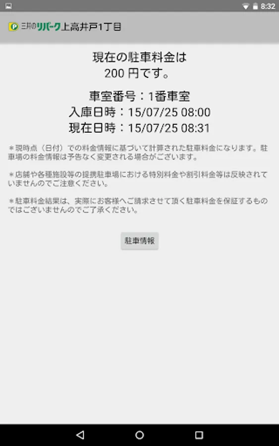 In conjunction with the above "parking" function, you can calculate and check the parking fee currently charged in real time. You can check how much your parking fee has been so far anytime, anywhere from your smartphone. You can also select the parking you want to visit in the future, and calculate in advance how much you will be charged when you park there. (The fee calculation function is being developed sequentially, and it can be used in some parking lots.) You may not be able to).