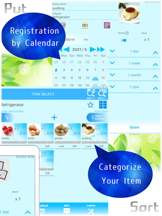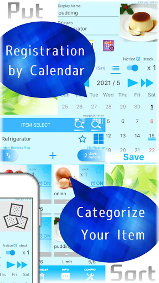 In-App Items are managed by category base and due date base, so it is easy to search target items.