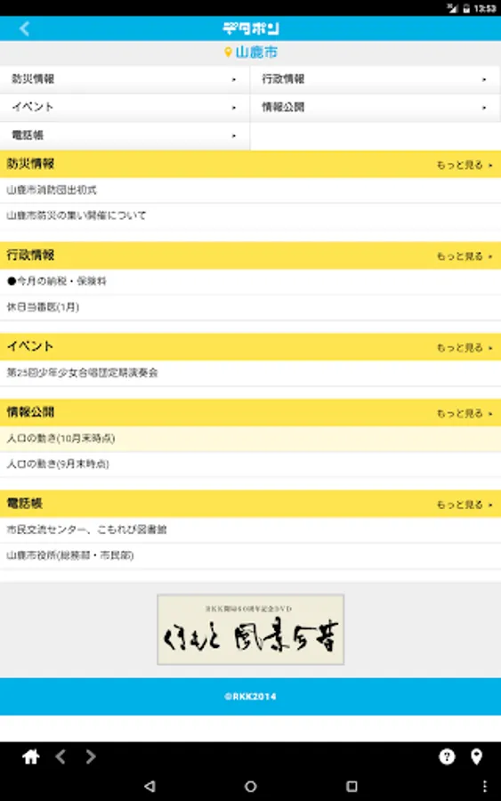 Residents information service "Detapon" is a service being provided in the data broadcasting of RKK TV. I have been calling the region-specific information that has been published from participating municipalities.