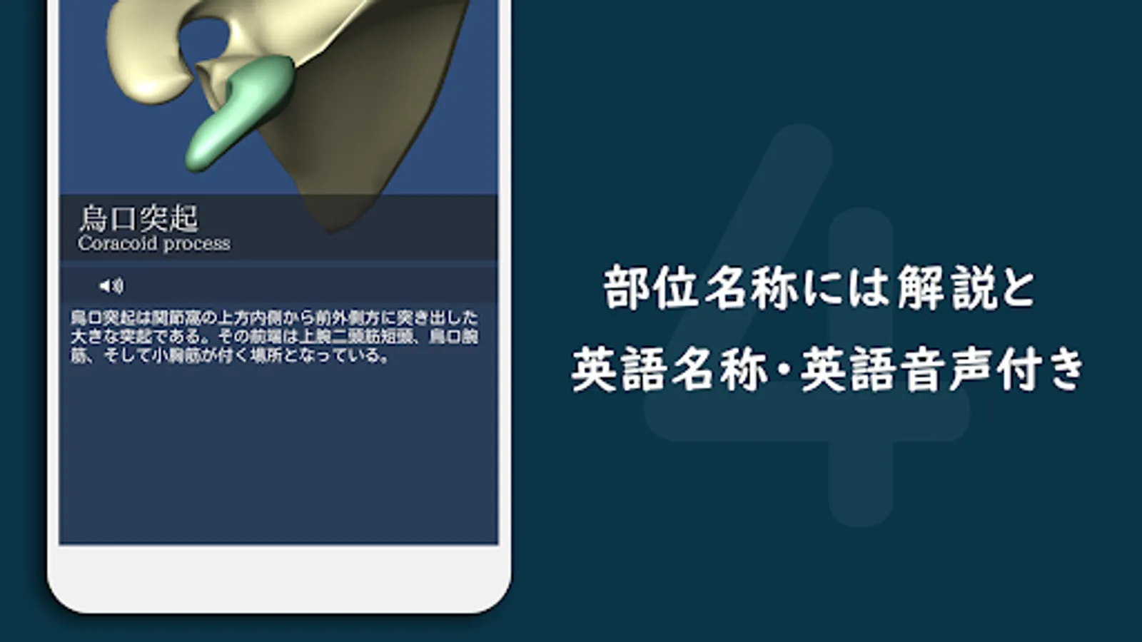 In addition to bone and part names and explanations, English names and their pronunciation voice data are also recorded.