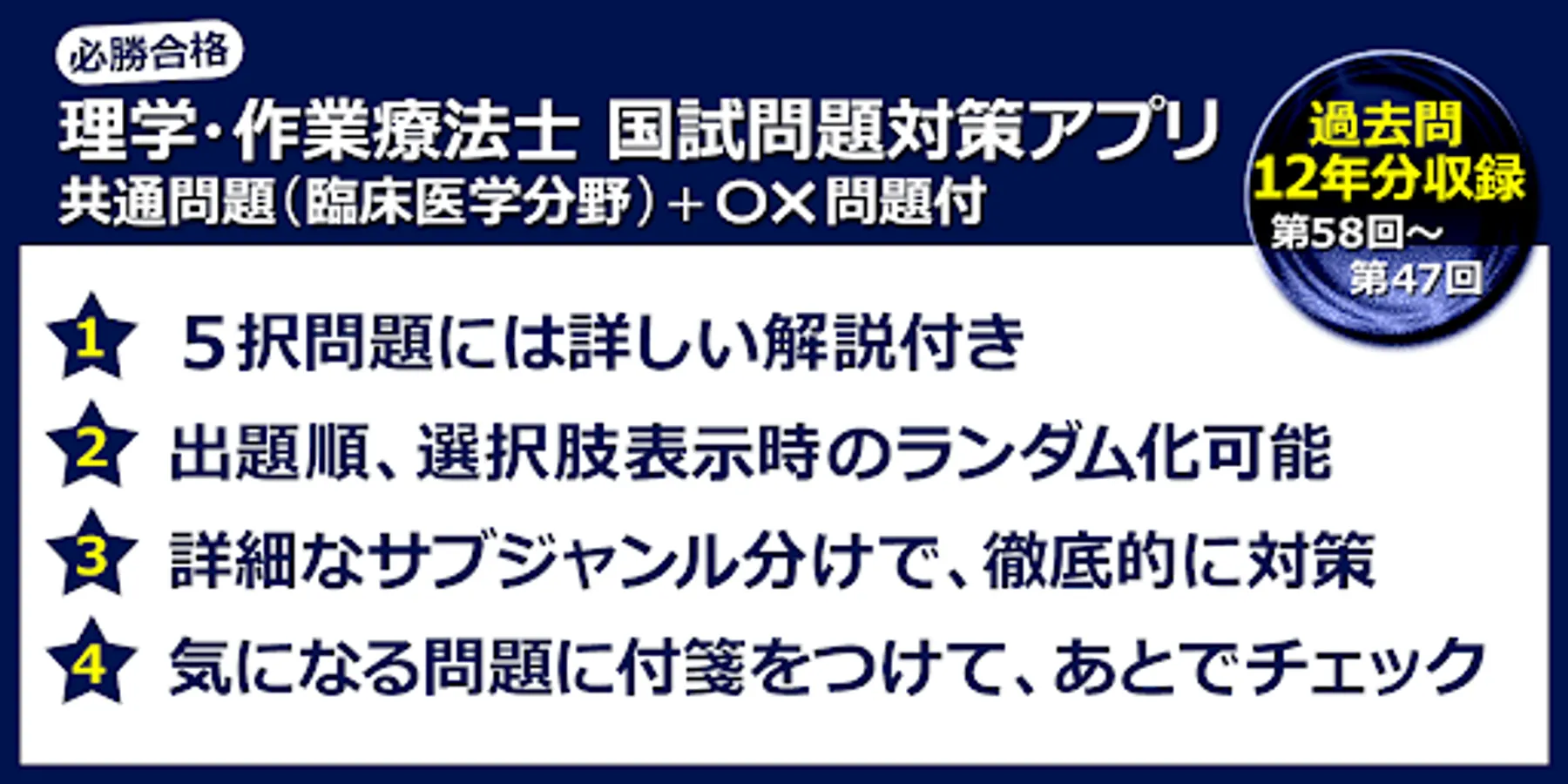 ・Five-choice questions and ○× questions (from the 54th session) have detailed explanations by active teachers.