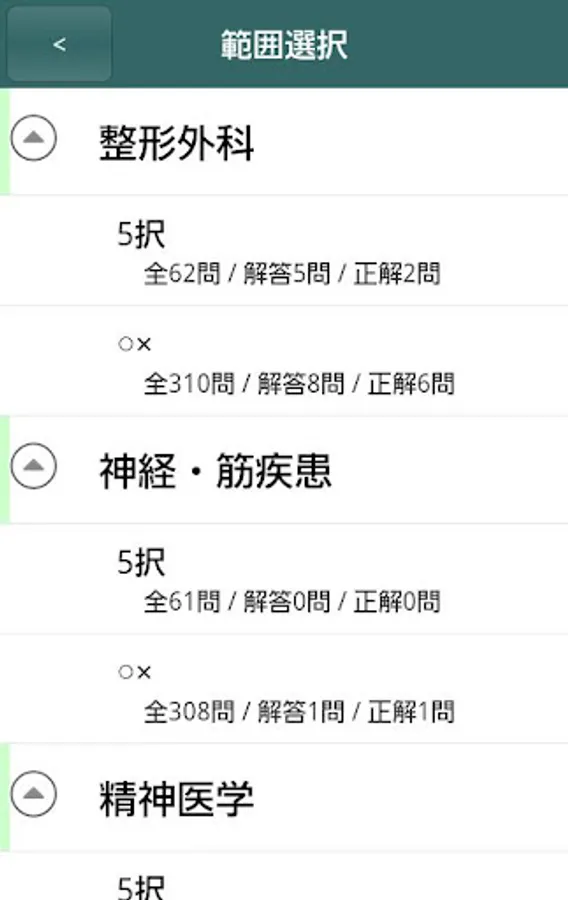 ・ Only unanswered questions, incorrect answers, correct questions, and questions with sticky notes can be extracted.