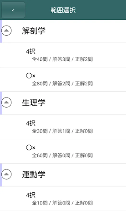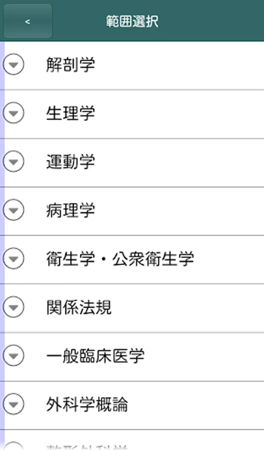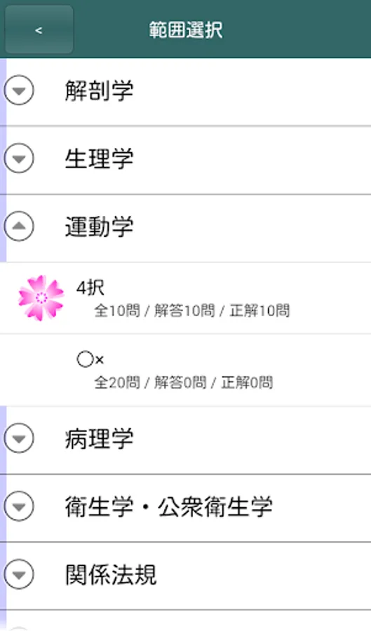 ・ You can select national exam past questions or ○ × questions from 15 fields