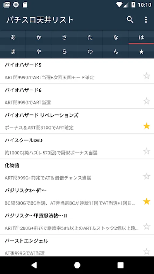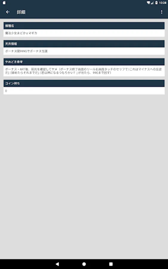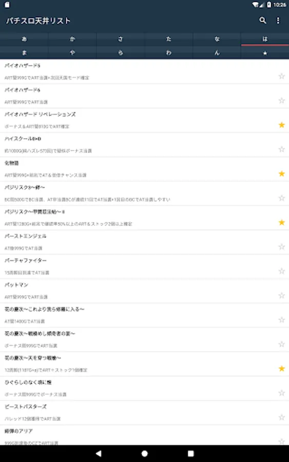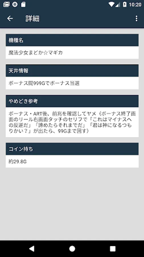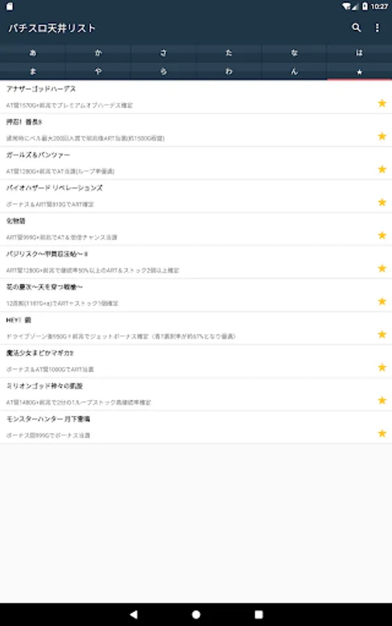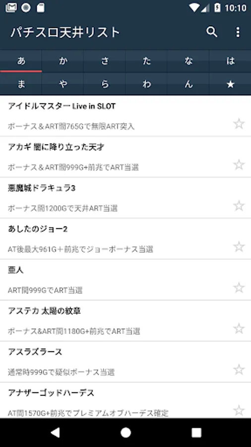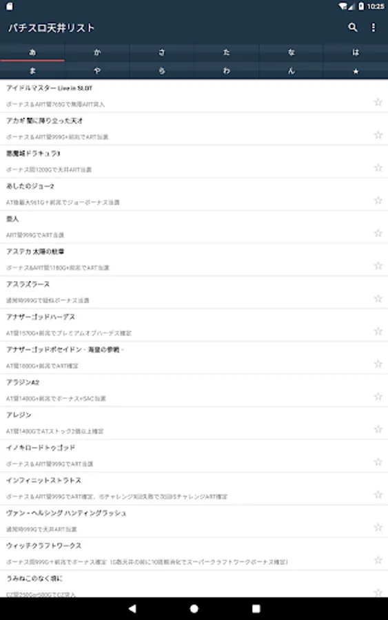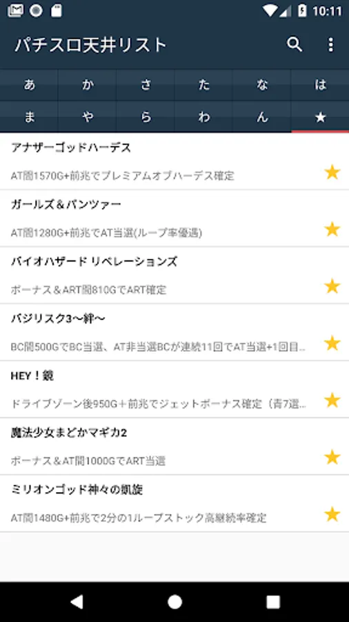Ceiling information list of Pachi (slot).