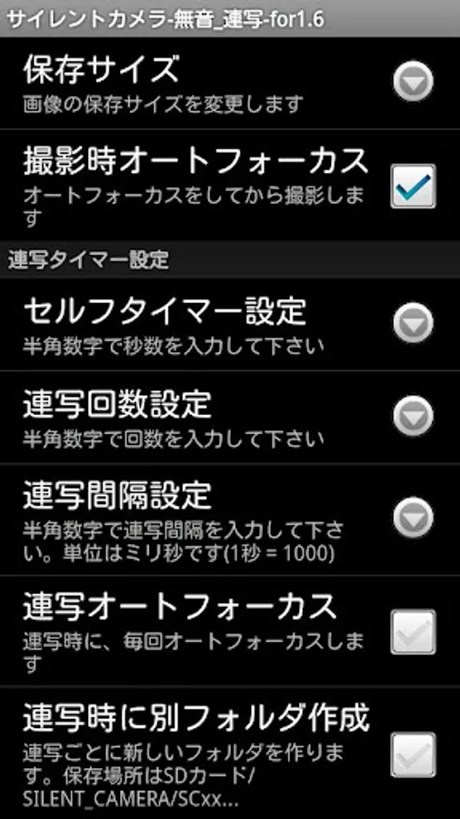 (Tips:Continuous shooting stability)[Size of save] - Minimum. [Aspect auto saving] - OFF. [Fixed saving vertical] - OFF. [Preview when taking a picuture] - OFF.