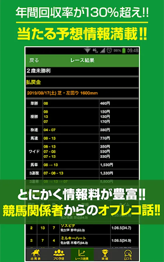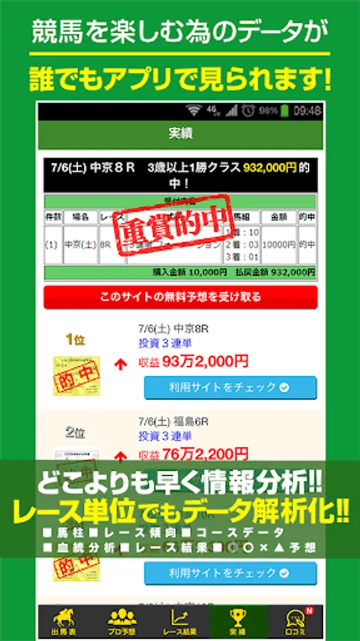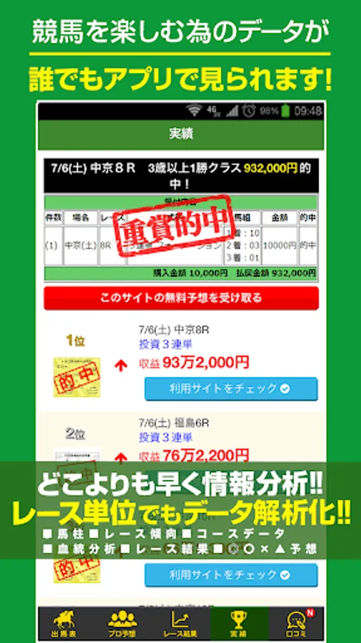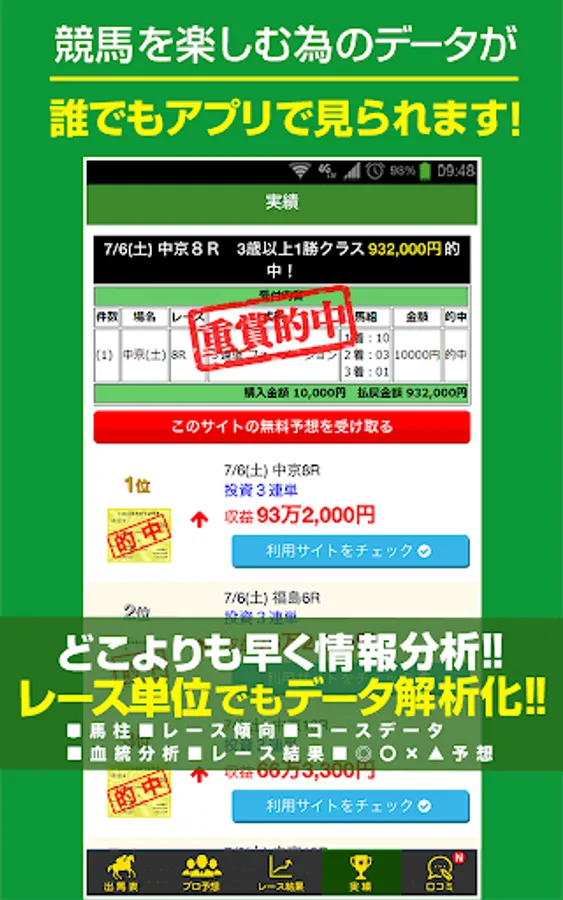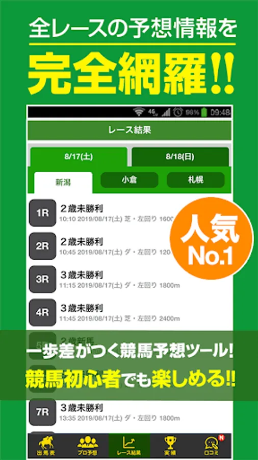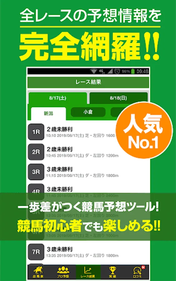 競馬の全レースの出走表や〇×△◎予想をアプリ内で一度に閲覧することが出来ます。