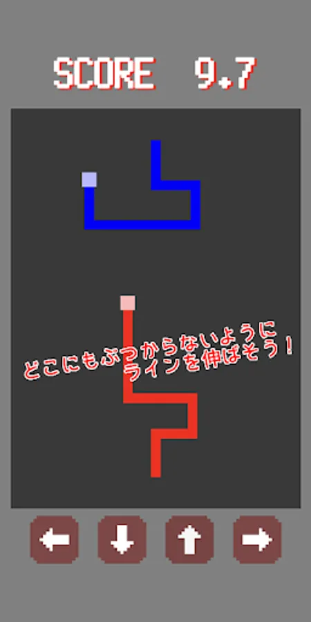 Operate the red line with the 4 buttons and stretch it as far as you can without hitting your own blue line or wall or your line.