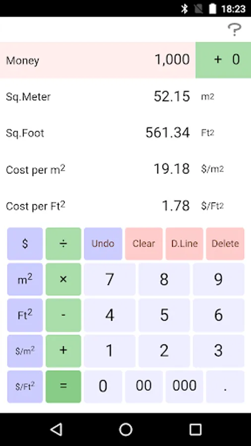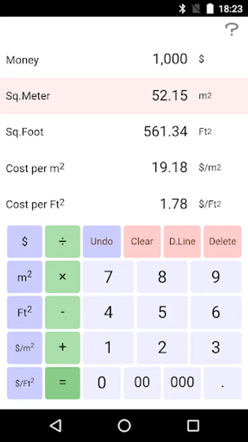 It is an application that can calculate the amount, area, and cost per square foot/meter.