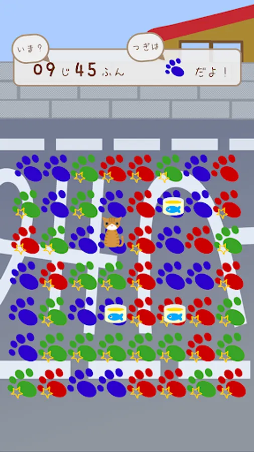 The cat follows the footprint of the same color as the square where it is sitting, so it switches the footprints that are placed in the specified color on each turn and guides you to the feed square.