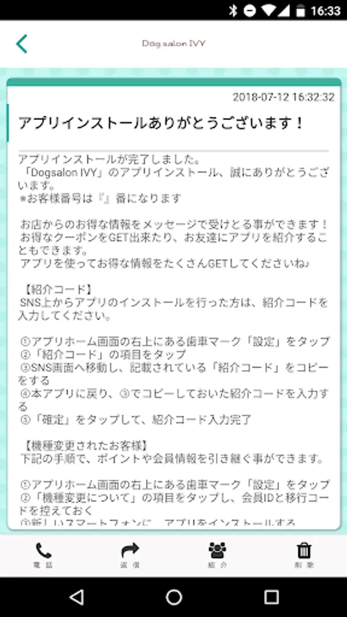 You can introduce the application of Dogsalon IVY to your friends via SNS.