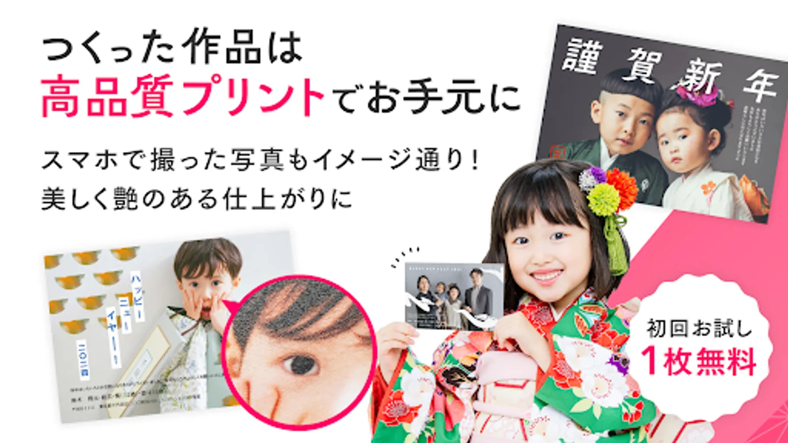 ・I want to create a stylishly designed New Year's card using my child's smartphone photo.