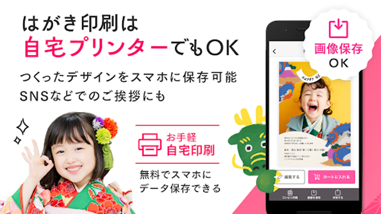 ■Since you can save the completed New Year's card data on your own device, it is also recommended for people who want to print it on their home printer. In addition to printing, New Year's cards can also be used to post images on SNS, etc.