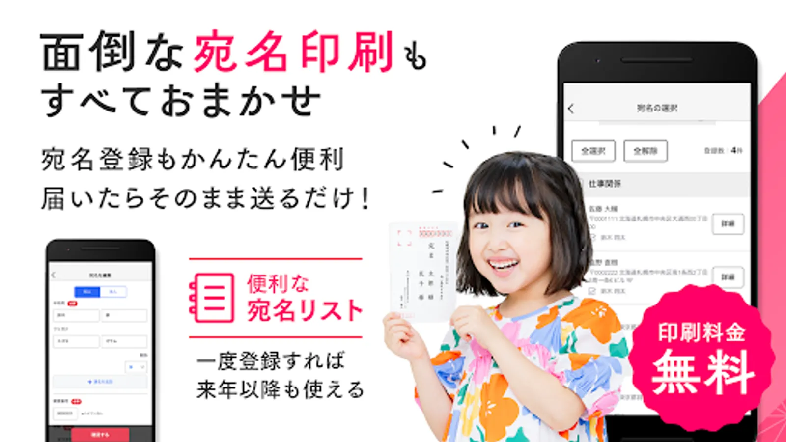 ・Among the free New Year's card apps, I would like to use an app that allows you to easily create designs and print addresses on your smartphone.