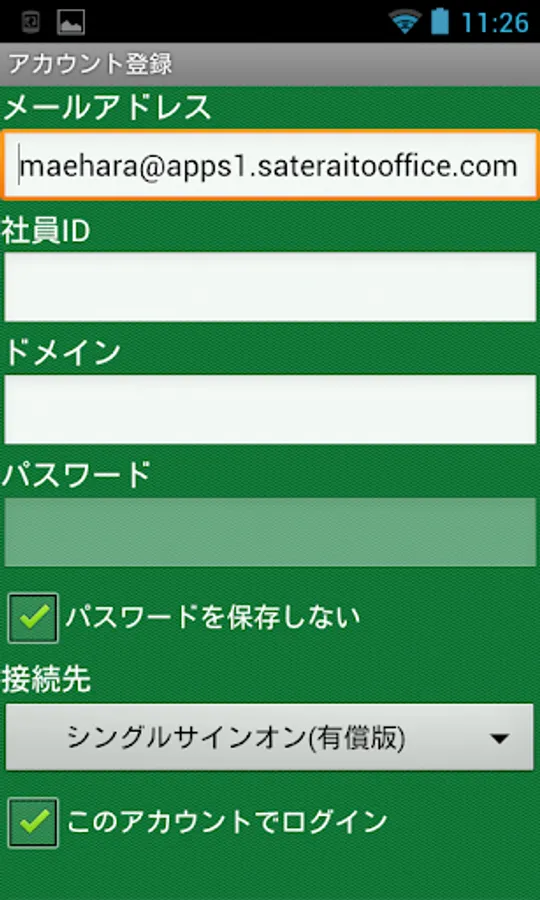 Enter input to the "e-mail address" to the e-mail address or "Employee ID", "domain"